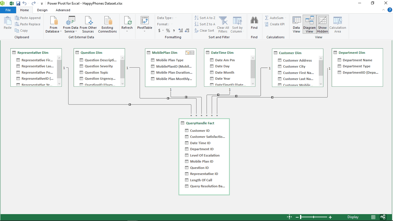 HappyPhones Ltd is a company that is concerned with delivering mobile communications services and finding ways to improve its customer service and knowledge base. In recent times, their customers have been finding it difficult to properly reach out to the company, lodge complaints, and get solutions to their problems. My goal as a data analyst was then to ask the right questions that could give insights into why this was happening. My task was to properly collate and clean the data, write queries that can answer questions I ask while analyzing, and suggest tables that could be added to the data model to ideally help understand the data schema better while visualizing actionable insights and information that is necessary to spur data-driven decision-making from the stakeholders.